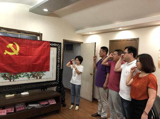 “我志愿加入中国共产党,拥护党的纲领,遵守党的章程……”铮铮誓言响彻在党员活动室内。6月22日下午,浙江煤炭地质局机关第二党支部全体党员为上半年政治生日的党员同志过了一次集体生日,支部书记为过政治生日的5位党员送上了塑封入党志愿书和祝福。