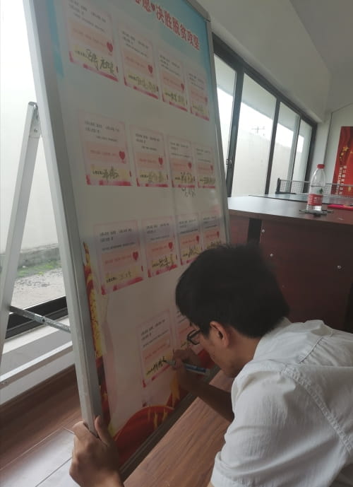 一场“点亮你的微心愿 决胜脱贫攻坚”勘探二队助力脱贫攻坚行动在热烈的氛围中进行着,将本次党日活动推向高潮。“我的心愿是,书包、文具”,这是一名10岁小女孩赵梦艳关于好好学习的朴实愿望;“我的心愿是,一台电风扇”,这是一名70多岁老人赵干松渡过酷暑最实在的想法……大家认真地看着微心愿展板上他们的贫困原因、具体心愿,争相在微心愿展板上签字,10分钟不到,15名帮扶户的微心愿全数“点亮”,一个个灰色心愿格子里,都被贴上了象征着“已点亮”的红色爱心贴纸,党务人员逐一给大家开据了特别的收条,后续将由扶贫驻村干部进行统一采购、派送。聚沙成塔,聚水成涓。此次点亮微心愿活动,升华了本次党日活动的内涵,党员们以行动践行初心使命,满足了困难群众生活上最迫切最实在的小心愿。