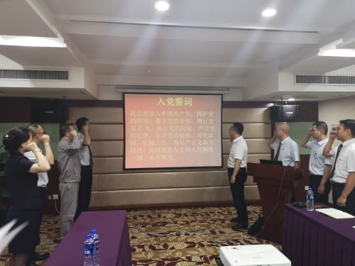 牢记党员身份,筑坚强堡垒。在“七一”来临之际,饭店支部全体党员集体过政治生日,大家同唱一首党歌《没有共产党就没有新中国》,支部书记给每一位党员佩戴党徽,带领大家重温入党誓词,强化党员意识,坚实筑牢企业党建堡垒。