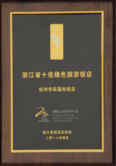 本次由浙江省饭店业协会发起的2017年度“浙江省十佳绿色旅游饭店”的评选工作,历时一个多月,通过申报、网评网投、专家评审、管理部门评价等环节严格筛选评选,最终华辰国际饭店凭借高品质的酒店服务水平及持续多年在绿色、节能管理方面取得的成就,喜获该奖项。