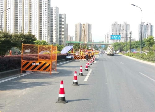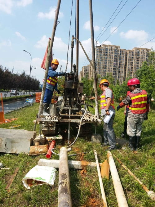 此次城市道路工程勘察面临着复杂的施工情况,复杂的道路交通及地下管线施工安全是该项目施工的重点与难点。项目部坚持在管线描述不清的地方,先行探孔,坚持探一孔、打一孔,完钻一口井,验收一口井,严防意外发生,规范施工作业程序。在工作中,由于城市道路工勘的特殊性质,项目一直同路政、交警、电力、杭徽高速、街道等多个单位保持着密切联系,根据各单位建议制定方案,结合项目情况编制确定总体的勘察大纲(包括安全生产)。根据路政、交警部门的具体要求编制针对道路勘察施工的施工方案和应急预案,购置并设置专用围挡和警示牌、警示灯等一系列的警示标志;根据杭徽高速公路部门的要求,编制涉及杭徽高速段的勘察施工方案及应急预案;根据余杭电力部门的要求,在采用专业的三维螺旋探测查明到拖拉管线路位置后,编制了针对110kV电力管线的勘察施工方案和应急预案。