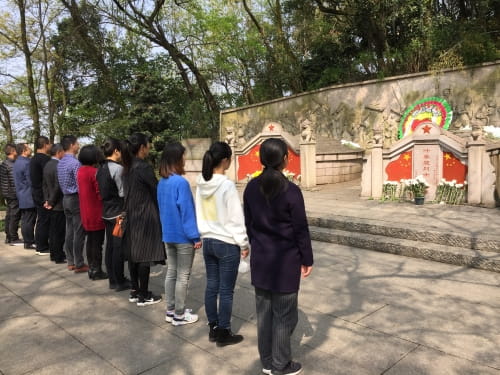 在余杭宝塔山烈士陵园内,气氛庄严肃穆,大家向烈士敬献花篮,肃立默哀,寄托对革命先烈的无限哀思,并认真观看了英烈们的光辉事迹。