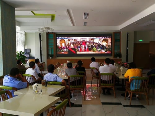 5月22日下午,华辰银座酒店举行主题党日活动,全体在职党员、积极分子、入党申请人及各部门群众代表齐聚一楼华美餐厅,观看红色电影《建国大业》,共同庆祝建国七十周年。