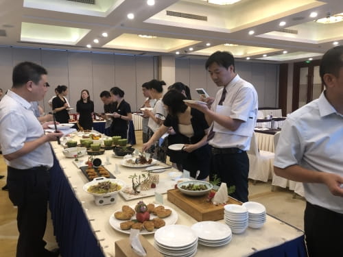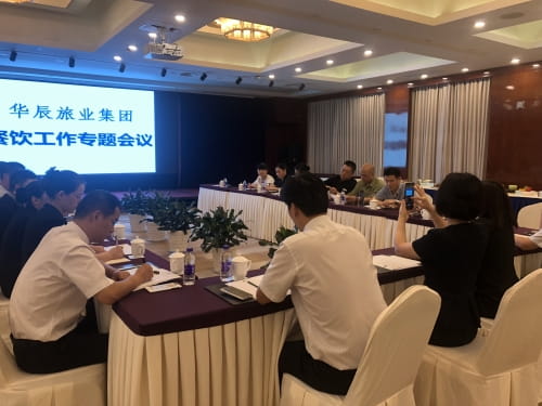 8月1日下午,杭州华辰旅业集团有限公司组织召开餐饮工作推进会议,品鉴与研讨,促管理提升。集团分管领导边烨丽、各酒店分管负责人、餐饮总监、厅面经理、厨师近20人参加此次会议。