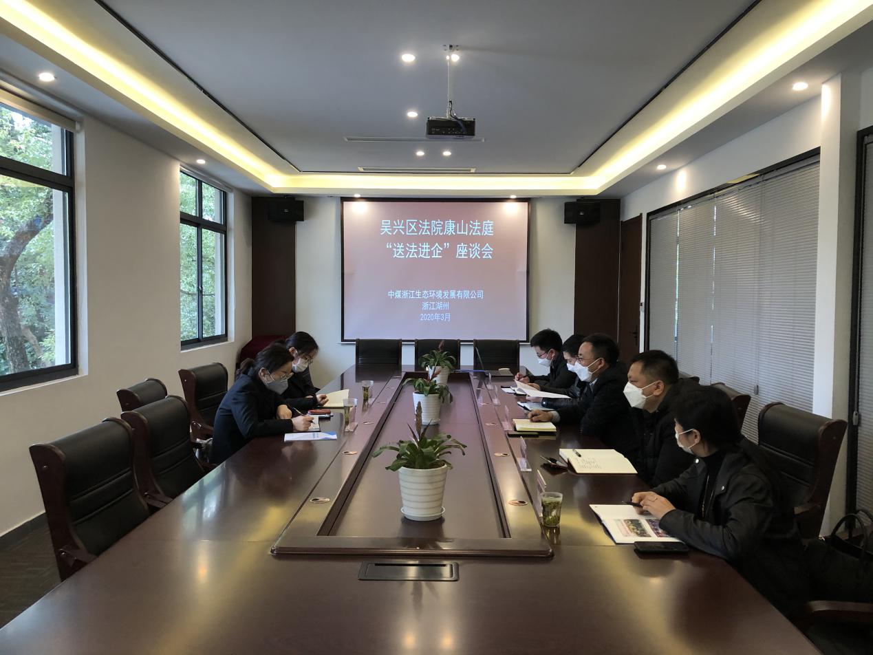 3月3日下午,吴兴区法院康山法庭副庭长(主持工作)黄剑一行至中煤浙江生态环境发展有限公司座谈指导疫情防控和复工复产工作,中煤生态总经理夏明强、副总经理包方寿、常年法律顾问及相关部门负责人参加座谈。