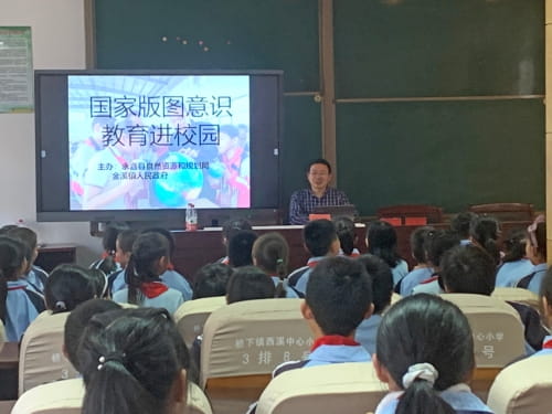习近平总书记强调,“要在厚植爱国主义情怀上下功夫,让爱国主义精神在学生心中牢牢扎根,教育引导学生热爱和拥护中国共产党,立志听党话、跟党走,立志扎根人民、奉献国家。”近日,浙江局扶贫工作组邀请浙江省自然资源与规划厅以及县自然资源与规划局测绘地理信息科专家,从国家版图的基本概念、国家四至、使用正确地图等三个方面,以及介绍永嘉县地图让大家换个视角认识家乡,为在校师生上了一堂精彩又特别的讲座。