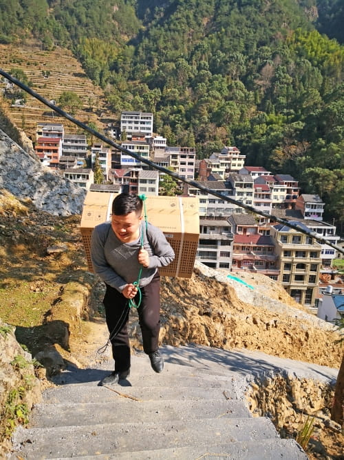 过去,村民们没其他收入来源,只能选择种地。“但是要种个地啊,要翻好几个山头,又累又危险。也有一条路可以开车上山,但是很绕,得一个多小时才能到呢。”一位村民说道。
