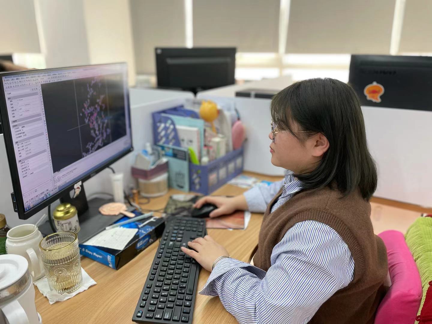 “姑娘们学习能力和创新能力极强,平时自学各种测绘专业的基础知识,研读几十本技术规范及新软件的应用,摸索研究,认真钻研,并不断从失败中总结经验。”地理信息中心负责人韩月说道,积累到一定程度后,大家根据软件说明书总结作业方法和流程,开发程序,大大提升了她们的工作效率。地理信息中心重视“传帮带”工作,韩月时常利用空余时间指导和协助年轻同事实战操练。在她的带动下,新人龚佳毅在AutoCAD和ArcGIS二次开发、Openlayers地图引擎、WebGIS等方面深入钻研,成功研发出应用到最新版cad批量截分幅图和勘测定界属性赋值的新程序,大大提升了团队工作效能。