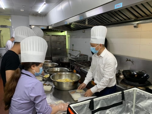疫情之后,酒店陆续有员工离职,原本30人的队伍缩减成14人。陈跃除了做好总经理的统筹管理工作外,还要去各个岗位“顶岗”。“除了去工程维修部‘兼职’外,去的最多的就是餐饮部了。”陈跃笑着说道,快餐是酒店疫情期间重要的收入来源,为了增收,华辰星光接过了附近四五家酒店的餐饮保障工作,最忙的时候,一天要提供1000份快餐。餐饮部目前只有两个厨师,忙不过来之时,陈跃就去帮忙洗菜、切菜、打包……熟能生巧,他笑自己现在已经是个熟练的打包小能手了。