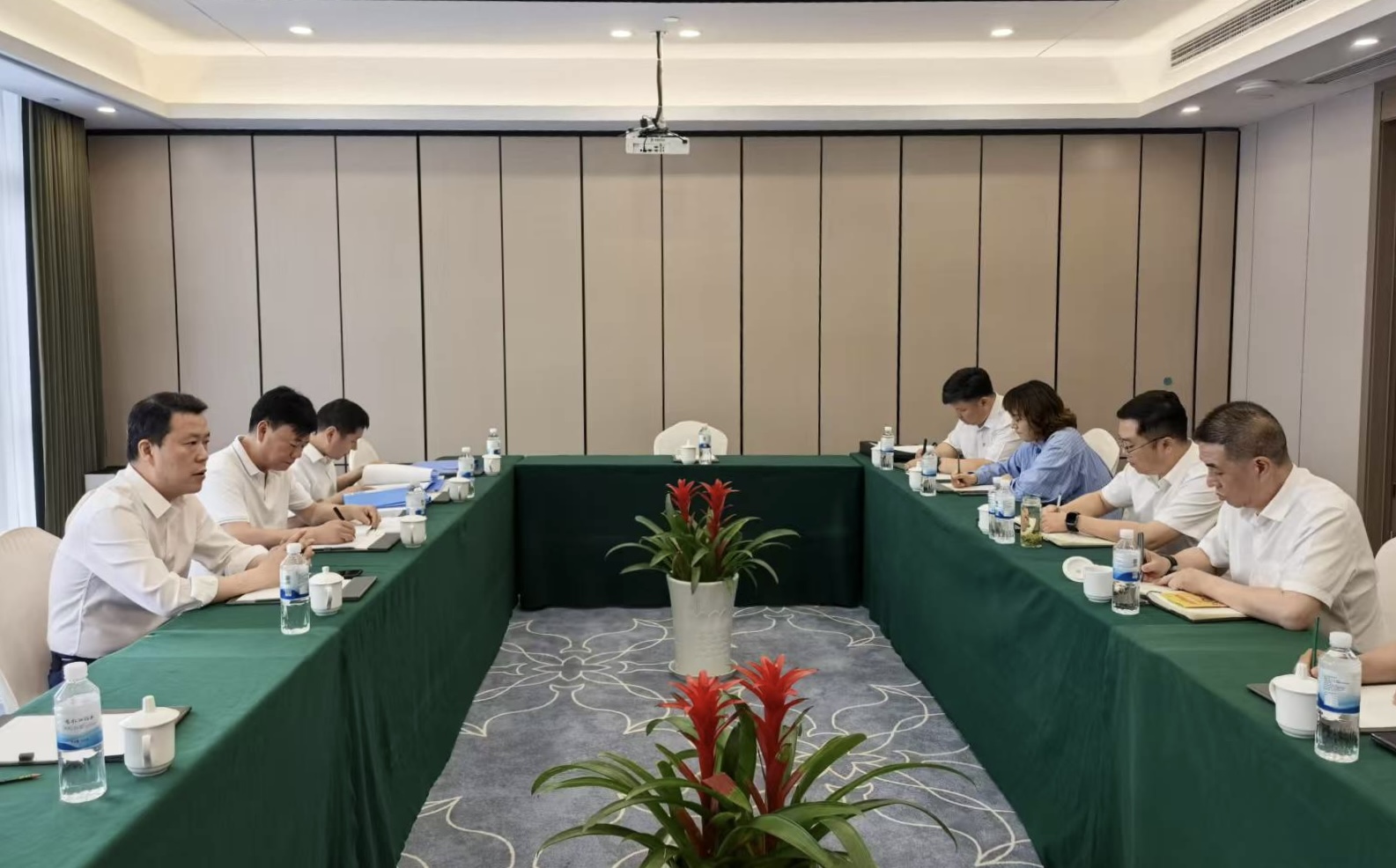 7月22日,中煤浙江(浙江局)党委副书记、总经理(副局长)李非一行到焦煤集团拜访交流,与焦煤集团党委书记、董事长皮大峰进行座谈。局党委委员、副总经理(副局长)陈必权,焦煤集团党委常委、副总经理唐世界,总工程师李国栋参加。