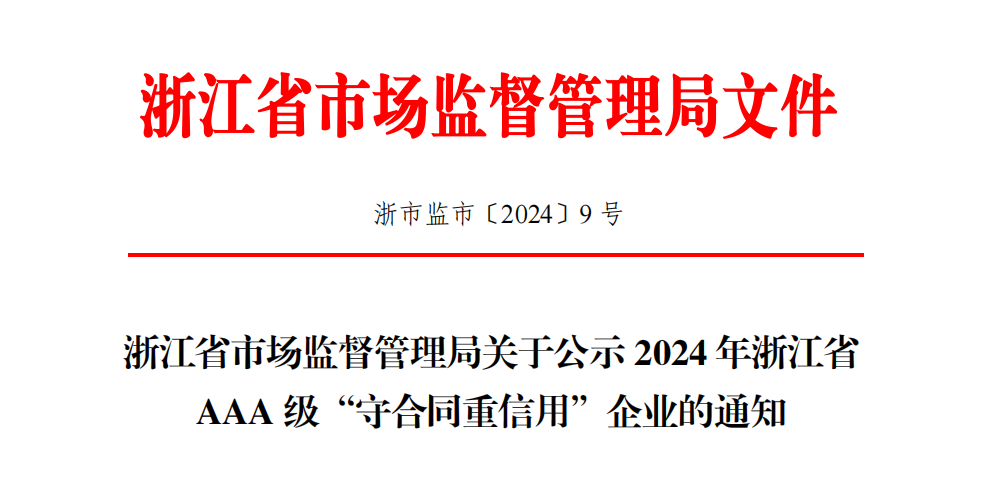 近日,《关于公示2024年浙江省AAA级“守合同重信用”企业的通知》公布,中煤浙江检测凭借自身良好的信用体系建设、诚实守信的经营理念,获得浙江省AAA级“守合同重信用”企业荣誉称号。