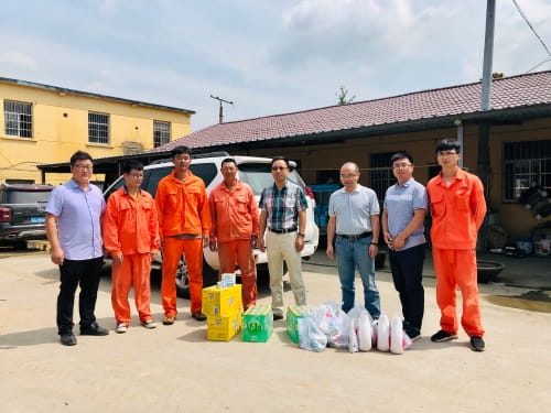 酷暑降临,热浪来袭,浙江煤炭地质局勘探一队(中煤浙江生态环境发展有限公司)在高温下坚守岗位的一线干部职工以及项目安全生产情况牵动着单位领导的心。近日,勘探一队2019年度夏季高温慰问工作陆续开展,7月24日—30日,一队队长、党委副书记夏明强,党委副书记、纪委书记、工会主席刘义华,副队长包方寿,副队长郑小冬及党务、科技、安全等相关部门人员先后前往上海南方水泥有限公司安徽广德区域矿山生态恢复及景观提升项目、湖州联想科技创新中心桩基项目、湖州太湖温泉度假酒店地热井工程项目、桐庐红狮自备矿山边坡治理工程等工地施工现场进行高温慰问工作,为一线职工送去清凉饮品及解暑降温用品,并对各项目夏季高温安全生产、消防安全、党建工作进行了检查。