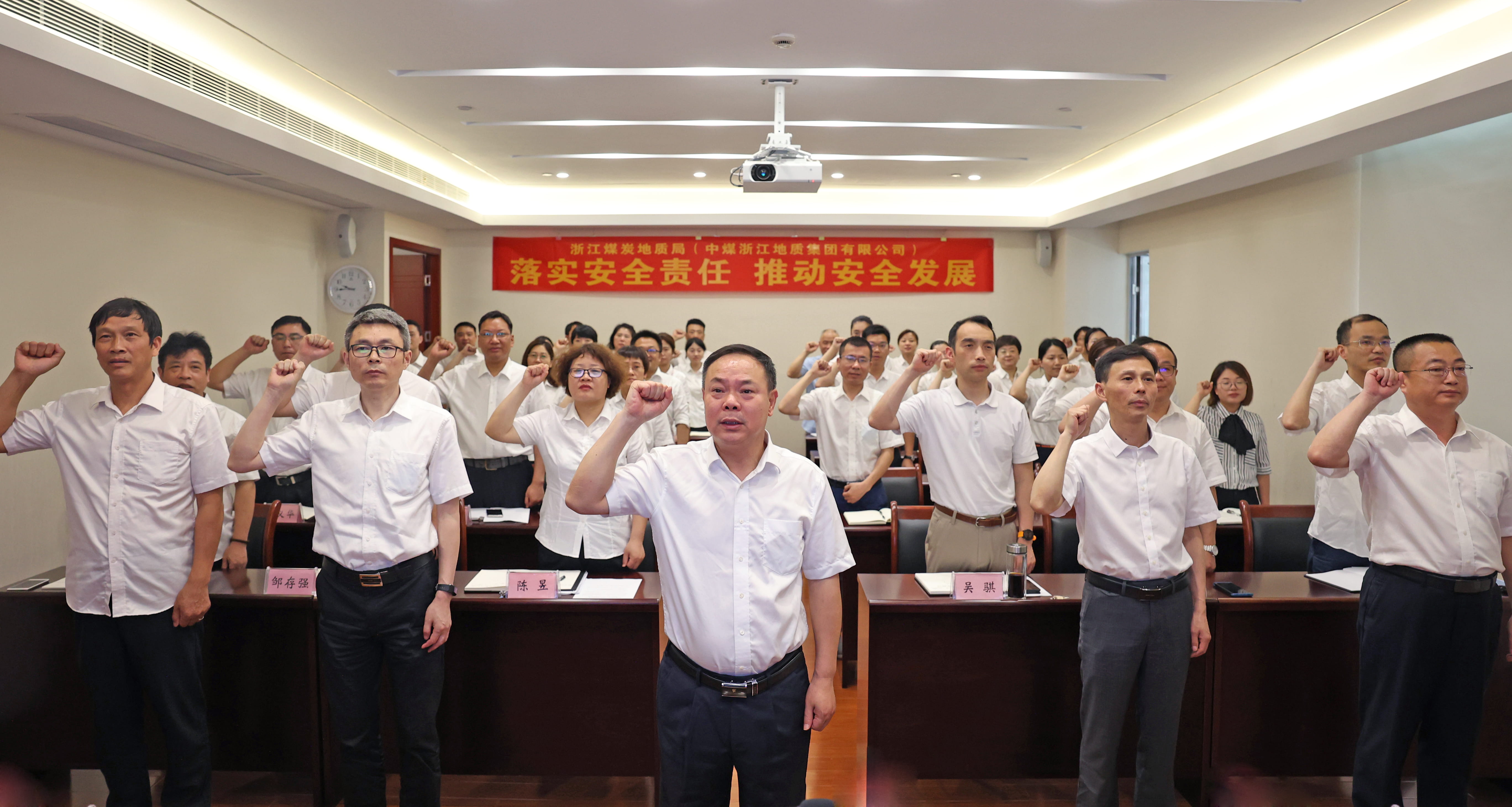 局本部全体人员在“安全生产月”主题横幅上进行签名,承诺牢固树立生命至上、安全发展理念,坚守安全底线,筑牢浙江局(中煤浙江)安全发展根基。